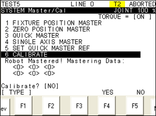 | Jig mastering (专门夹具核对方式) | 出厂时设置:需卸下机器人上的所有负载,用专门的校正工具完成。 |