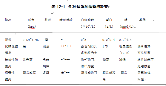3.脑脊液检查 脑脊液压力增高、外观混浊或脓性、 白细胞数多达1000×106/L以上,分类以中性粒细胞为主,糖降低,蛋白质增多。脑脊液常规涂片检查和培养可进一步明确病因(表13-1)。还可采用对流免疫电泳法、乳胶颗粒凝集法对脑脊液进行病原学检测。