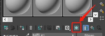 2-选择场景中的模型,选择做好的材质,选择材质预览图下方的第三个工具