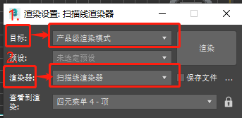 将目标设置为产品级渲染模式,渲染器设置为扫描线渲染器。