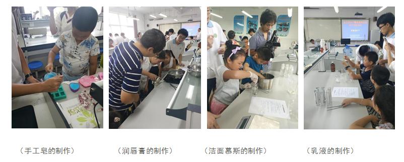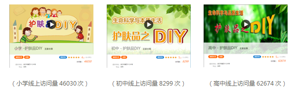 护肤品DIY课程在线上赢得了很好的口碑,小学学段访问量46030次,初中学段访问量8299次,高中学段访问量62674次,总体访问量达到了117003次。以上图片是线上的访问情况,以下是开展线下活动的情况。