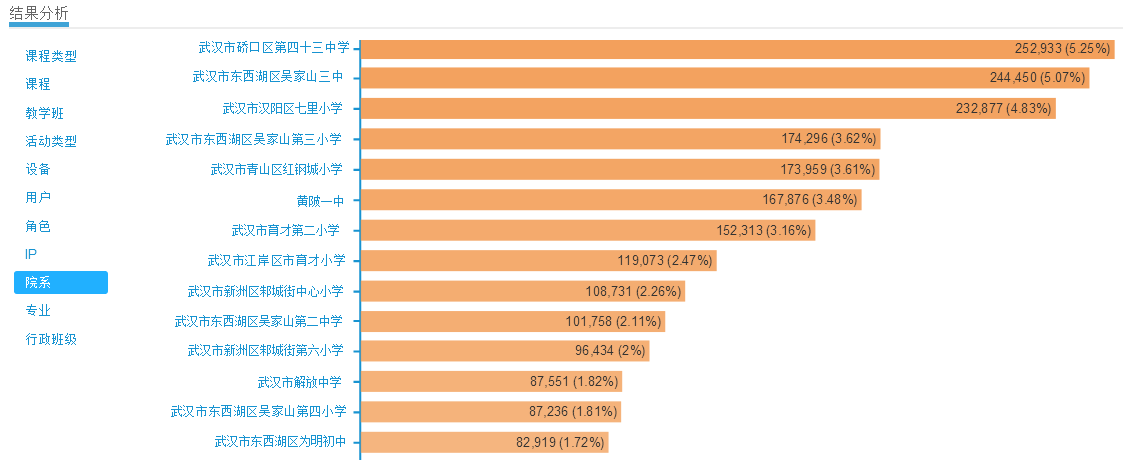 由上统计可以看出,本次参与活动学习量较大的学校分别来自江岸区、东西湖区、汉阳区、硚口区、青山区、黄陂区、新洲区。