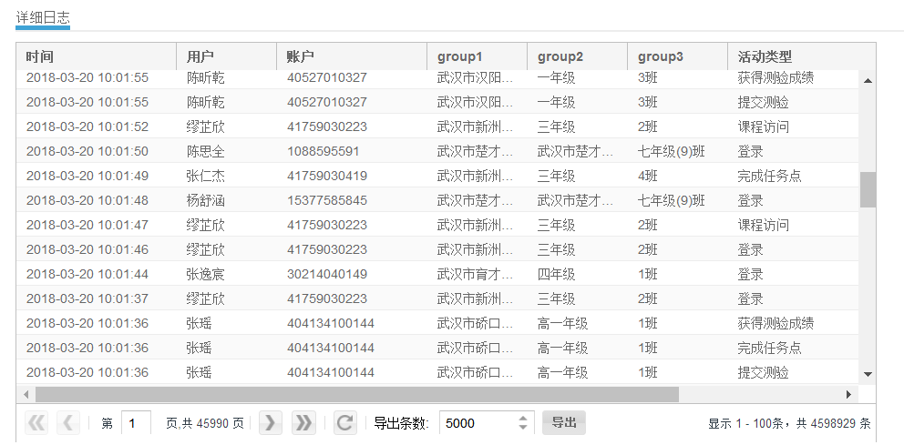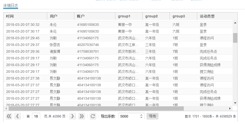 上述图表可以看到,本次2018寒假课程联盟活动共产生459万8929条日志,可见用户对此种学习方式的认可程度及喜爱。
