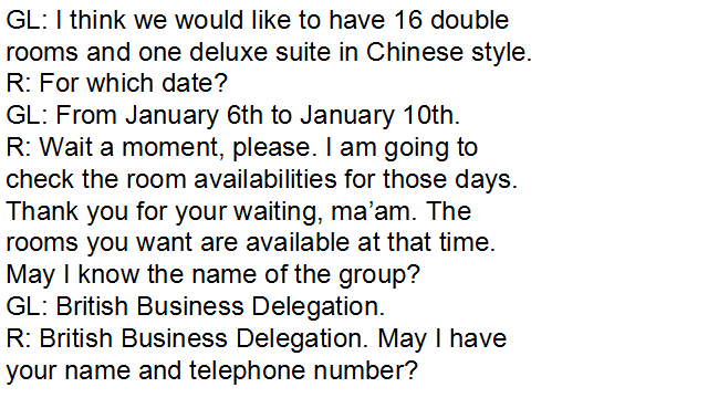 13.1 Practice 1 Booking the Room Service by Telephone