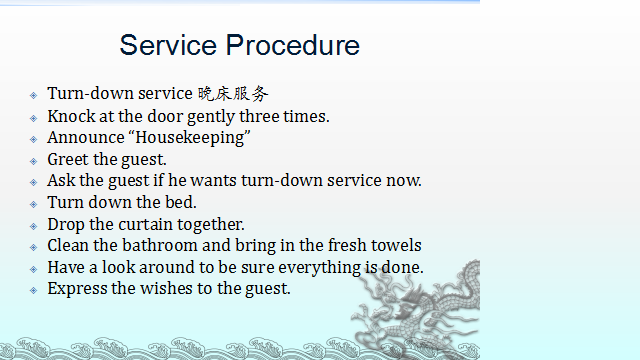 Practice Turning Down the Bed and Asking an Extra Bed 实训项目做晚床与要求加床