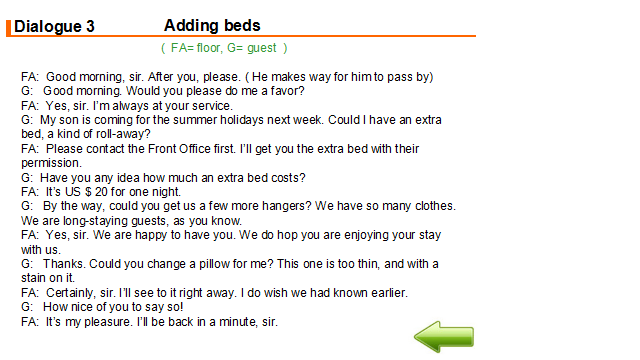 Mr Brown asks Wang Li to put an extra bed because one of his former classmates will stay here with him for a night.