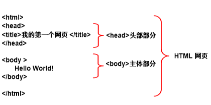 HTML超文本文档分为文档头和文档体两部分,在文档头里对这个文档进行一些必要的定义,文档体中是要显示的各种文档信息。