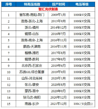 目前,国内已经投运的15条交流特高压线路如下表所示。