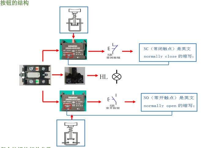 根据实训室现有的按钮,认识它们的结构,掌握它们的电气原理,能正确识读铭牌