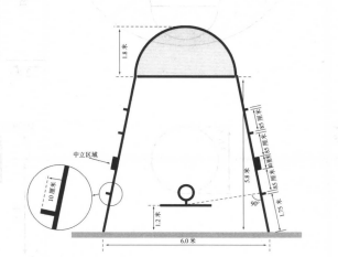 篮板上的包扎物要符合如下要求:其一,对篮板的底部和边沿,包扎物要覆盖其底面和侧面,侧面包扎物距离篮板底部最低为.035米:其二,篮板底沿包扎物的最小厚度为0.05米;其三,篮板前、后面距底部最低0.02米处要覆盖,包扎物的最小厚度为0.02米(如图7)。