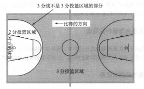 (2)限制区:从罚球线两端画两条线段至距离端线中点各3米的地方(均从外沿量起)所构成的地面区域叫限制区。