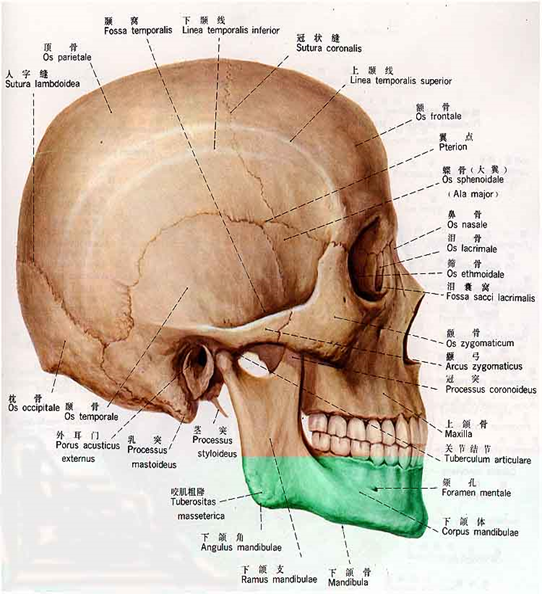 翼点:颞骨的薄弱处在额骨,顶骨,颞骨,蝶骨的汇合处,构成H形的缝称为翼点。