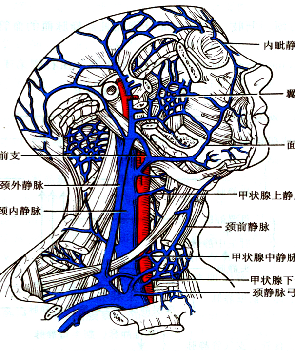 ③ 锁骨下静脉←颈外静脉 ←颞浅静脉←头部静脉网