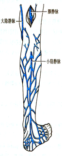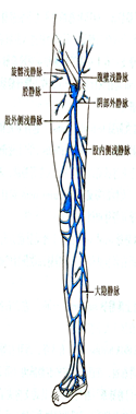 ②髂外静脉←股静脉←腘静脉←小隐静脉←足背静脉网