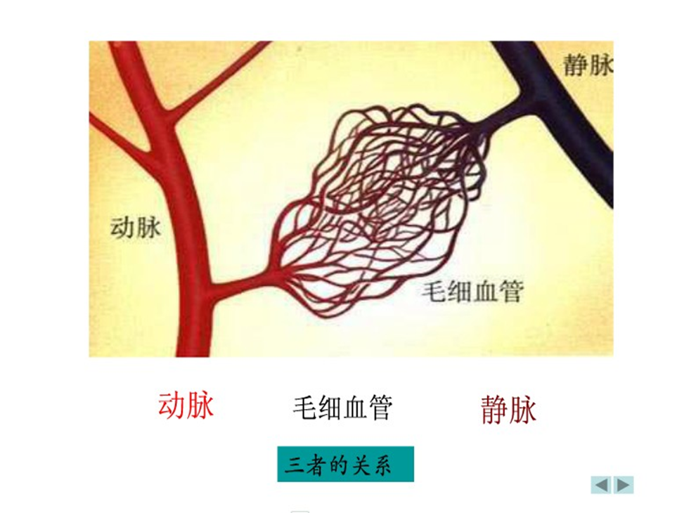 2.毛细血管:连于微动,静脉之间的细小血管,可以利于血液与组织间进行物质交换的血管。