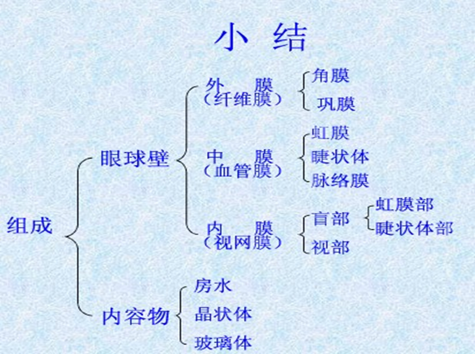 ①房水是无色透明的液体,充满眼球的前房和后房内。