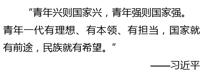 青年如初春,如朝日,如百卉之萌芽,如利刃之新发。未来要靠青年去创造,历史要靠青年去书写。我相信,当我们努力成长为有理想、有本领、有担当的人,就会找到自己与社会、与国家的命运交汇点,就能有所作为,实现人生价值,就能在实现中国梦的生动实践中放飞青春梦想,在为人民利益的不懈奋斗中书写人生华章!