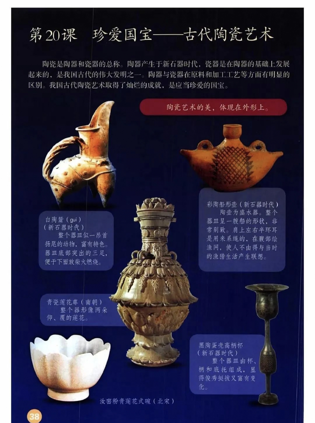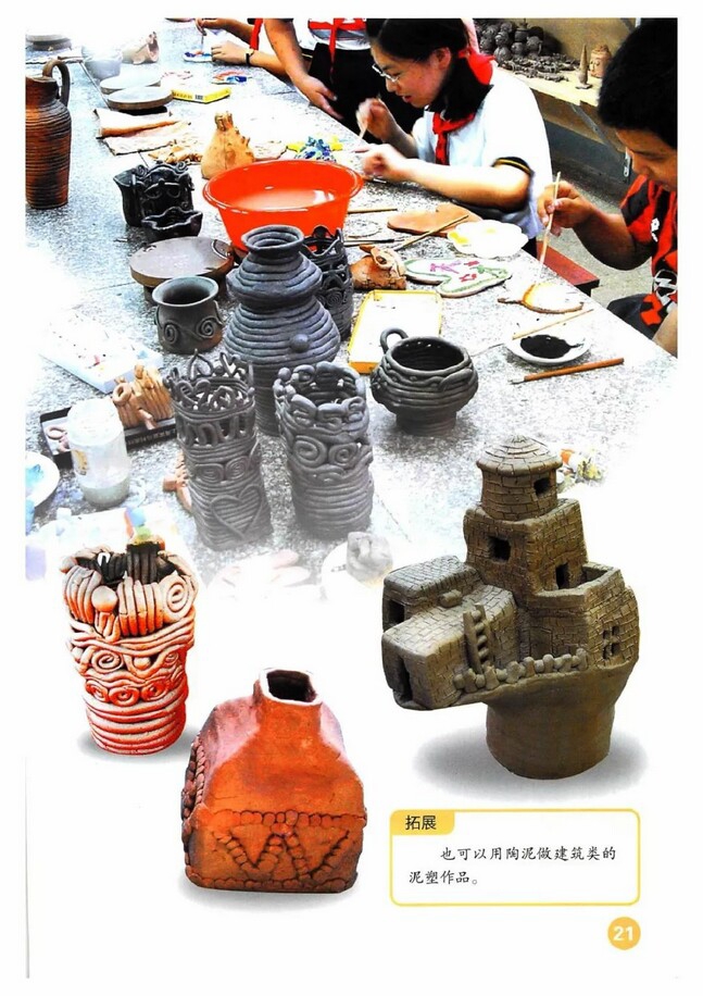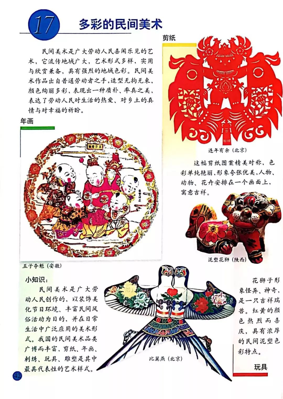 小学美术中有关民间美术、陶瓷艺术、传统建筑等类型的教学内容