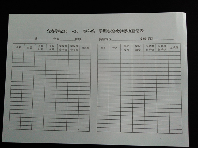 6.签到 上课前完成实验教学考核登记,按班级名单先后,分别写好:学号、姓名、实验时间、实验组号(按学号前后顺序对应实验台柜右上角标签号入座,一旦固定不得更改,如更改需向老师说明,实验操作考核与此相关)。