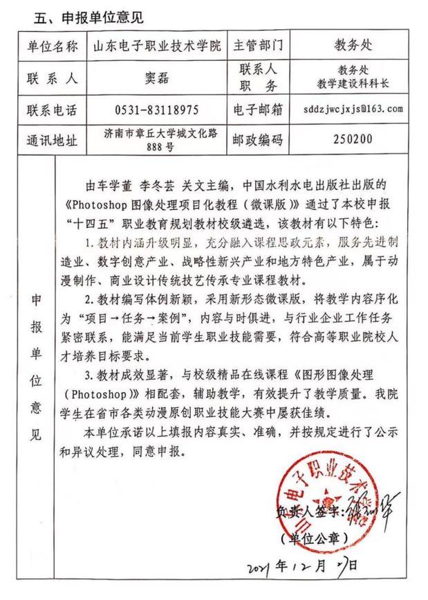 ● 申报单位意见