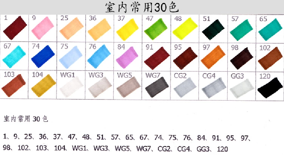 种类:马克笔颜色种类非常多,以数字进行编号。在选购时可依据专业需要来选购需要的颜色。