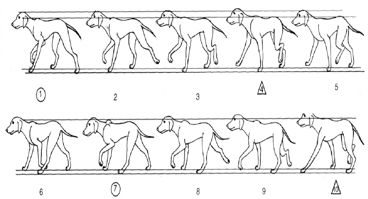 爪类动物行走规律:
