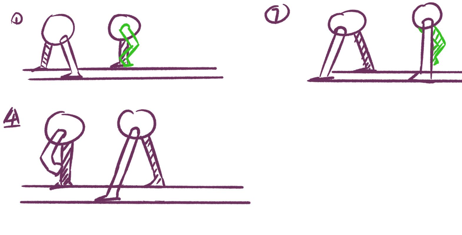四足动物对角线换步法特点: