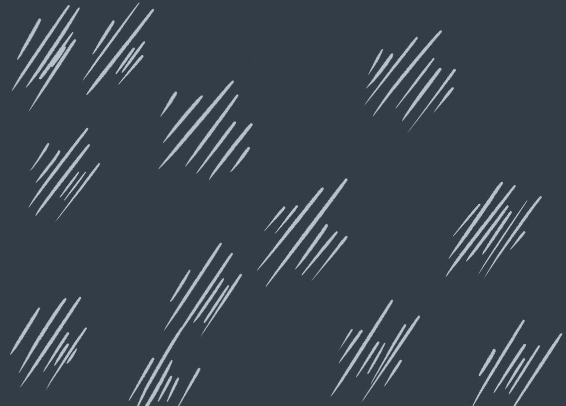 雨用粗细适中、较长的直线,线条相对密一些,下落的速度较近景层慢,线条从进画面到出画面,需8—10张动画(每张拍一格)。