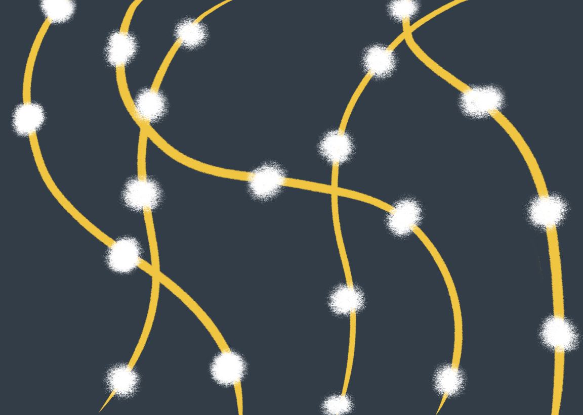 前层大雪花每张之间的运动距离大一些,速度稍快。前景层辅助线5-6条。
