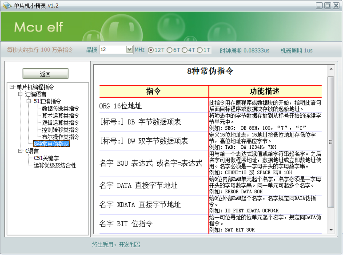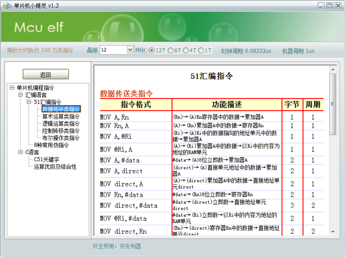 例如:指令INC A编译后对应的机器码是1个字节:04H(操作数A隐含在指令机器码中),指令INC ACC编译后对应的机器码是2个字节:05H、E0H,其中E0H是累加器A的地址(操作数A在指令机器码中独自占用1个字节)。