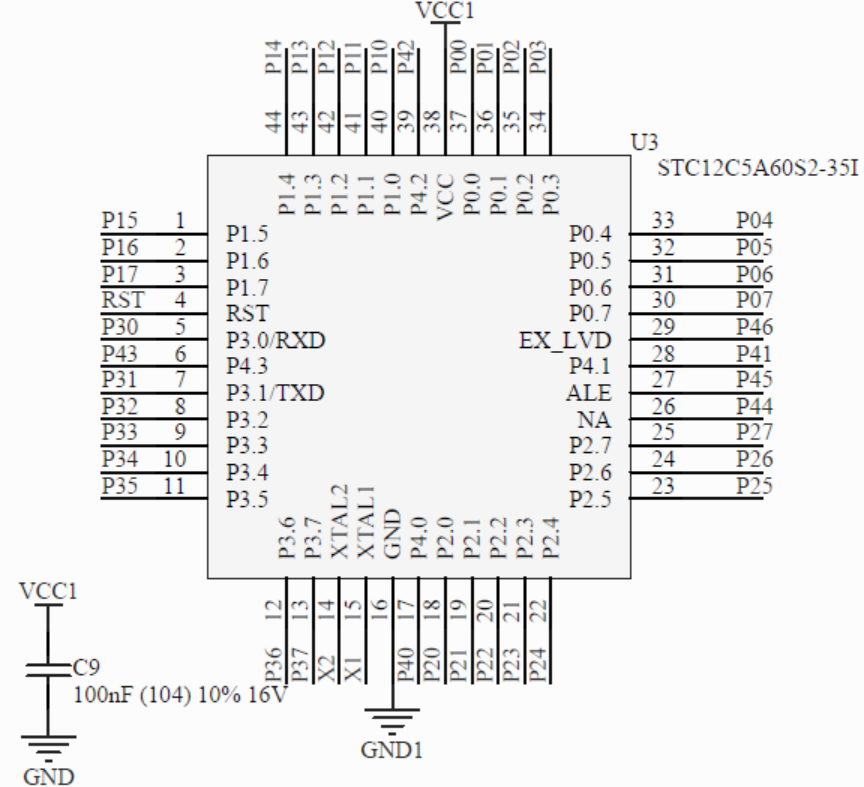 图1 STC单片机口袋实验板单片机引脚