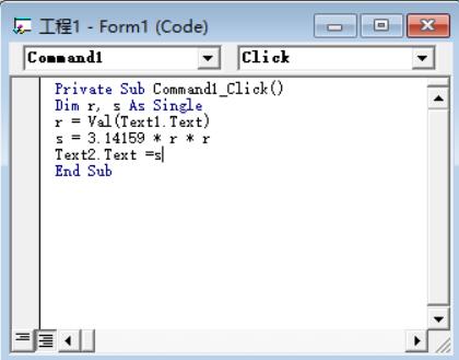在新窗体Form1上创建3个控件:命令按扭Command1、命令按扭Command2、文本框Text1。