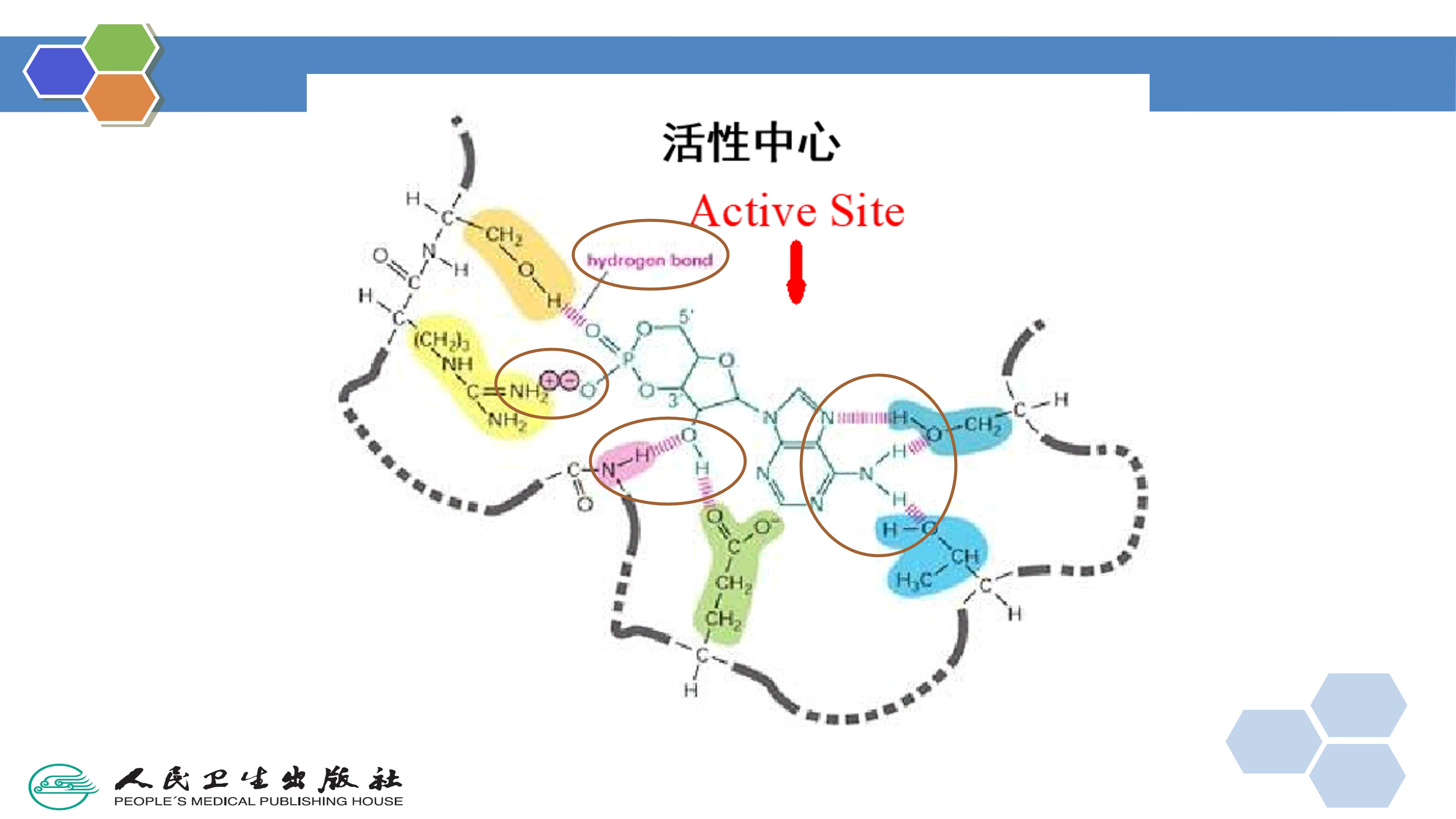 2.离子键( ionic bonds) 是指药物带电荷的正(负)离子与受体的负(正)离子之间,因静电引力而产生的电性作用。在生理pH时,药物分子中的羧基、磺酰氨基和脂肪族氨基等基团,均呈电离状态,季铵盐在任何时都呈离子状态。另一方面,主要由蛋白质构成的受体,其分子表面也有许多可以电离的基团,如精氨酸和赖氨酸含有的胍基和游离氨基是碱性基团,在生理pH时全部质子化,生成带正电荷的阳离子。组氨酸的咪唑环,色氨酸的吲哚环也可以质子化,但程度较低,视环境条件而异。门冬氨酸和谷氨酸均含有游离羧基,在生理pH时通常完全电离,生成阴离子基团。