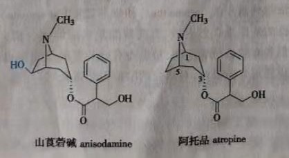 3.羟基与巯基 由于羟基中的氧原子电负性大于碳原子,且氧原子有两对未共享电子,在脂肪链上羟基表现为吸电子的诱导效应,在芳环上的羟基由于p-Π共轭效应而成为供电基团,使化合物的理化性质发生了较大变化。引入醇羟基或酚羟基会改变分子的分配系数,使分子的亲水性增加,从而提高其水溶性。用羟基替换氢原子会在很大程度上影响生物活性。例如,山莨菪碱( anisodamine)在C-6上比阿托品( atropine)多一个羟基其脂溶性降低,对中枢的作用也随之降低。