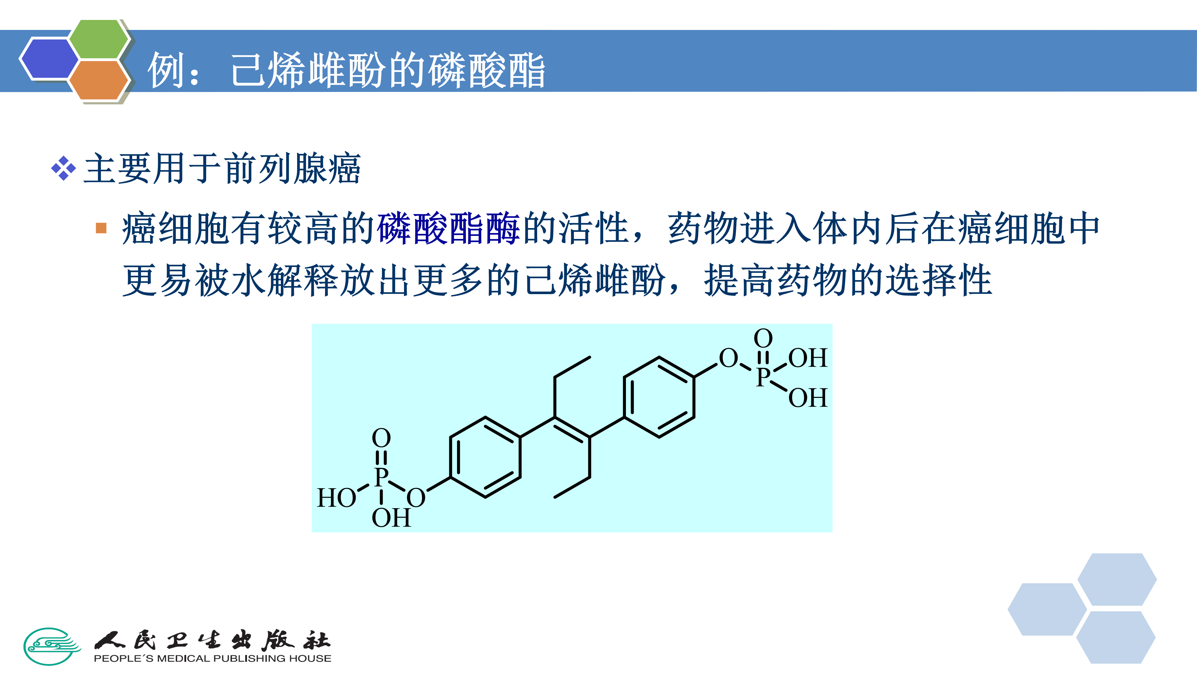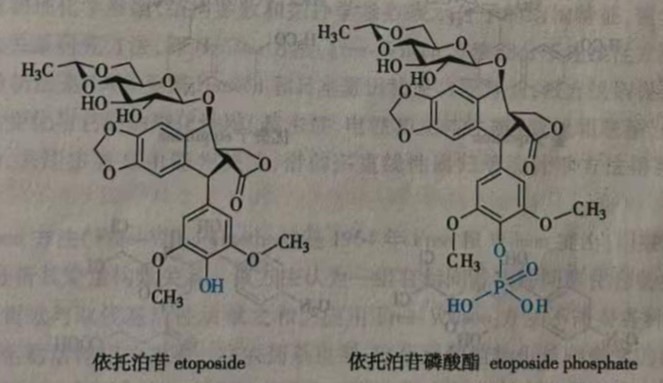 有的药物由于分子中缺少亲水基团而水溶性太小,解决的办法之一就是利用前药原理,在分子中引入一些亲水性基团,增加水溶性,以利于注射给药。如甾体类抗炎药倍他米松、地塞米松、氢化可的松等通过分子中的羟基与磷酸或有机二元酸成酯,制成有良好水溶性的盐类,可以制成针剂。在体内通过酶解而重新释放出母体化合物发挥作用。抗肿瘤药依托泊苷( etoposide)因为水溶性小,制剂中需加入表面活性剂吐温80、聚乙二醇和乙醇,这些物质都有一定毒性。将依托泊苷转变为依托泊苷磷酸酯( etoposide phosphate)后,就可在没有加入有害辅料的条件下,在较短时间内以更高的浓度在体内转运。