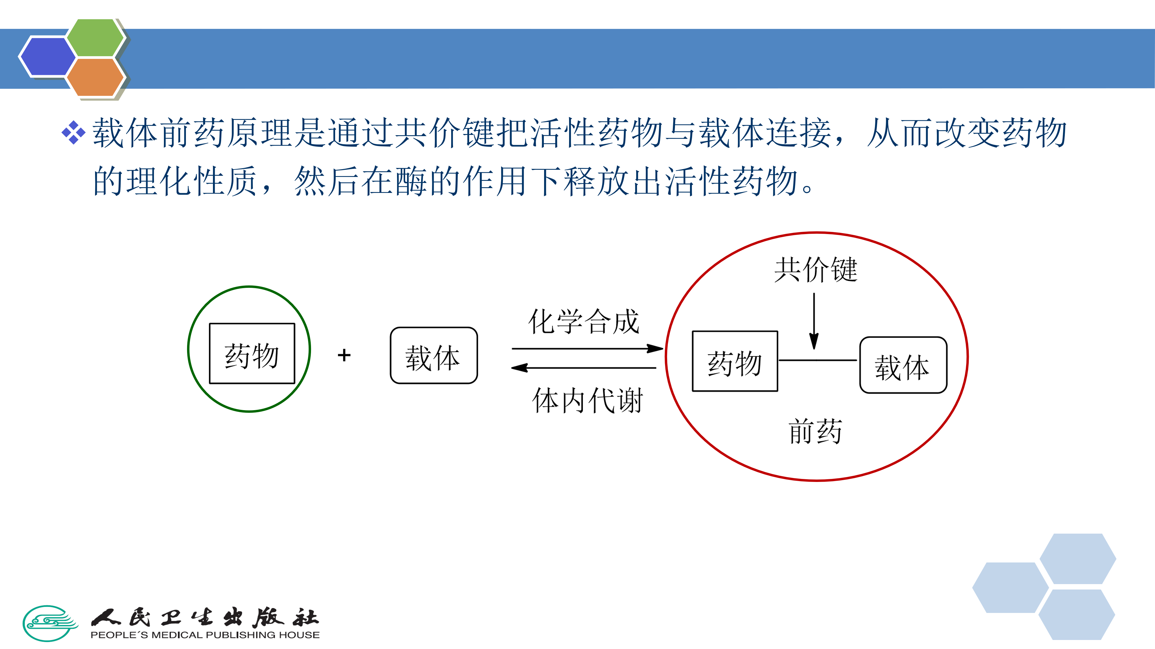 载体前药原理是通过共价键把活性药物与载体连接,从而改变药物的理化性质,然后在酶的作用下释放出活性药物(图2-7)。