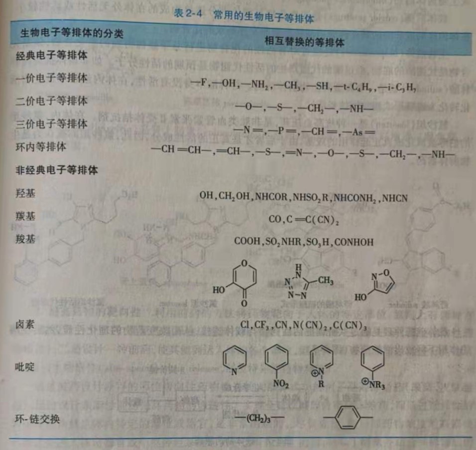 药物设计中常用的生物电子等排体见表2-4。