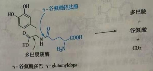 设计部位特异性药物释放的前药,总体的策略是发现一种在靶器官浓度高、而在其他器官几乎没有的酶,根据酶对底物特有的选择性裂解性质来设计合适的前药。例如,服用γ-谷氨酰多巴( γ- glutamyldopa)可选择性扩张肾血管。γ-谷氨酰多巴是L-多巴(L-dopa)的前药,在肾脏蓄积并被选择性代谢。在肾脏中存在的两种高浓度的酶γ-谷氨酰转肽酶(γ-glutamyl transpeptidase)和L-芳香氨基酸脱酸酶( L-aromatic amino aciddecarboxylase)的连续作用下,γ-谷氨酰多巴在肾脏释放出多巴胺( dopamine),从而产生特异性的肾脏组织血管舒张作用。
