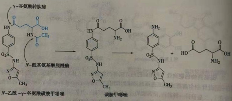相似的,服用N-乙酰-γ-谷氨酰磺胺甲噁唑(N-acetyl- γ--glutamylsulfamethoxazole)可使磺胺甲噁唑( sulfamethoxazole)选择性地蓄积在肾脏。N-酰基氨基酸脱酰酶(N- acylamino acid deacylase)在肾脏中的浓度也很高,在γ-谷氨酰转肽酶和N-酰基氨基酸脱酰酶作用下释放出磺胺甲噁唑,使其选择性地作用于肾脏和尿道。