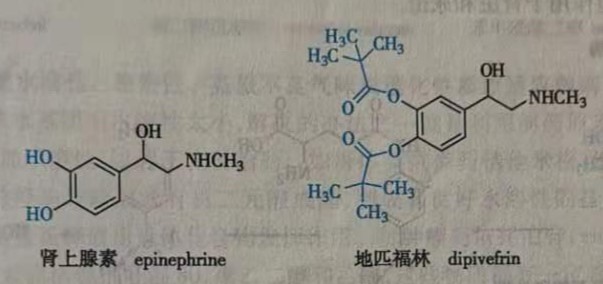 地匹福林( dipivefrin)是肾上腺素( epinephrine)的前药,能比肾上腺素更好地透过眼角膜,用于治疗青光眼。