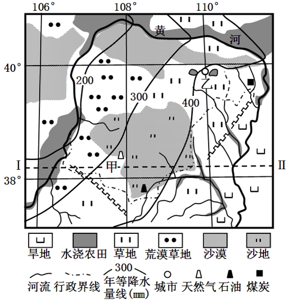 (1)说出该区域自然环境特征和农业土地利用类型。你认为沙地和旱地在生态环境治理中应分别采取的主要措施是什么?