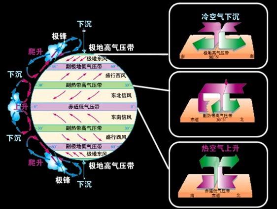③如果地球不自转,近地面,风从两极直接吹向赤道