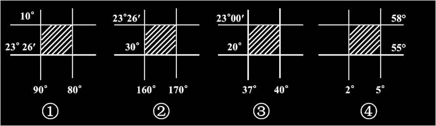 4.南极中山站(69°22’24’’S,76° 22’40’’ E)时间(区时)2009 年 2 月 2 日 9时 25 分,我国在南极最高点附近建立的昆仑站(80° 25’01’’S,77° 06’58’’ E)正式开站。据此完成(1)~(2)题。