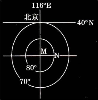 水平直线表示纬线,竖直的直线表示经线,读图回答M、N 两地的经度差( )