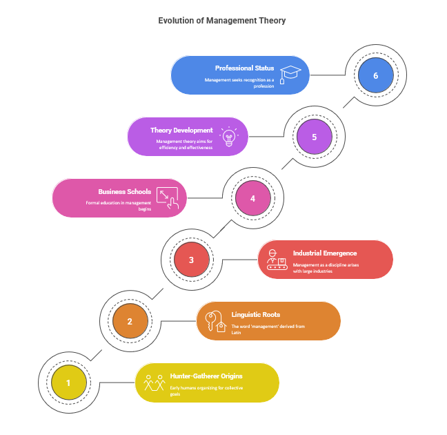 Management, as a practical, every day activity, originated as far back as man in his hunter-gatherer phase, organising effective ways of achieving collective goals in a highly co-ordinated manner.