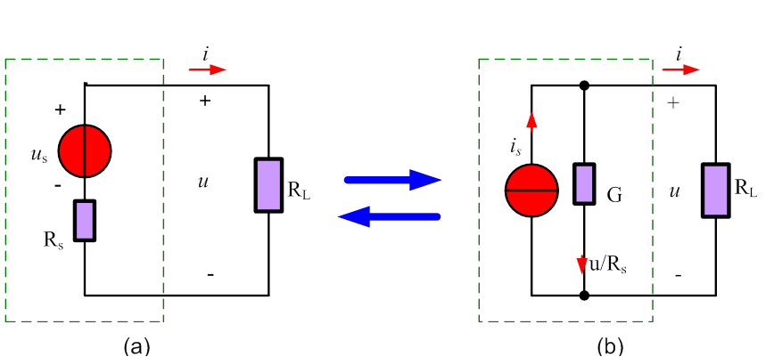 ③分析总结由实际电流源等效变换成实际电压源的的变换点及电路参数变换情况;