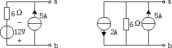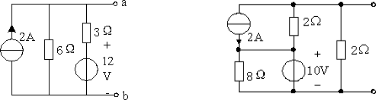 2. 对图 3.7.3(a)、(b)电路进行等效,画出分别将其等效为电压源和电流源的最终电路图
