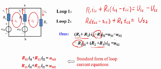 3)分析上述求解步骤及得到的回路电流法标准方程,总结回路电流法本质及标准方程特点,便于理解记忆并运用。