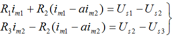 在网孔2的方程中取正号,反之取负号。在本例中,