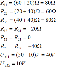 分别称为网孔1和网孔2的互电阻,是网孔1和2支路上的电阻。在此例中,